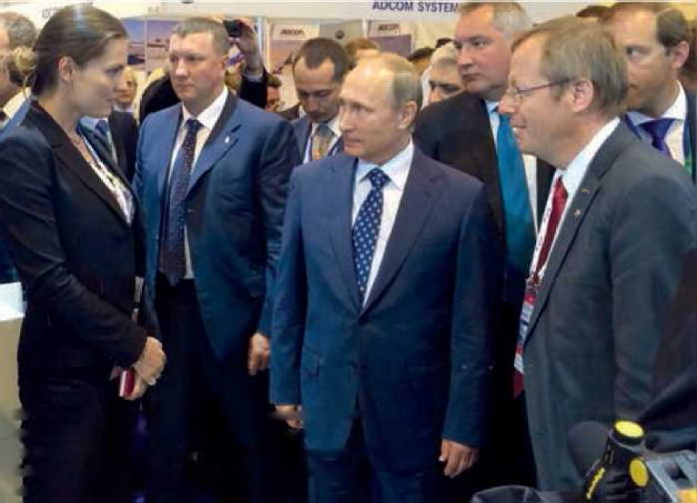 Сотрудница DLR Ольга Тривайло рассказывает президенту России Владимиру Путину и генеральному директору ЕКА Йохану-Дитриху Вёрнеру о зонде Philae, совершившем посадку на комету Чурюмова-Герасименко