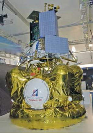 Полноразмерный макет разгонного блока "Фрегат-СБ" и лунного зонда "Луна-Глоб" на стенде НПО им. С.А. Лавочкина