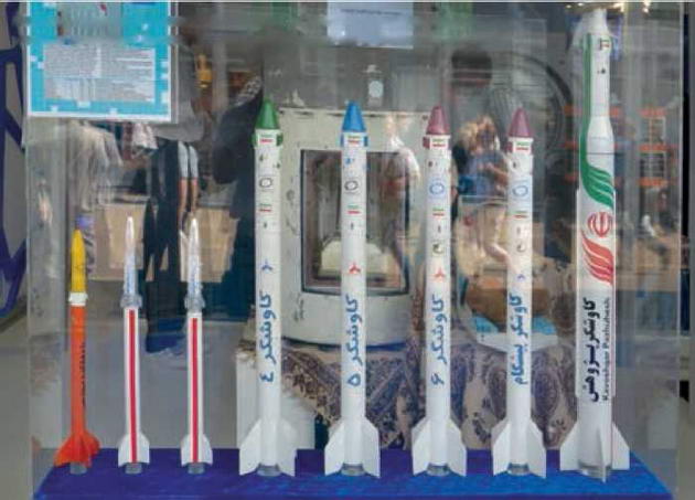Макеты высотных ракет "Кавошгяр", с помощью которых иранские ученые проводят биологические исследования в ближнем космосе