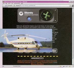 Сайт Sikorsky Aircraft Corporation (www.sikorsky.com/index.htm ) встречает посетителей строгим технологичным дизайном и вертолетом с анимированным несущим винтом. Структура сервера проста: основные разделы («О нас», «Истоки», «Программы»,