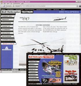 Невероятно богат на сюрпризы (приятные и не очень) сервер Bell Helicopter Textron (www.bellhelicopler.textron.com ). Он относится к категории так называемых «тяжелых» корпоративных сайтов, перегруженных фреймами, .Java-скриптами и выплывающими меню. На одной чаше весов – наглядность и привлекательность, на другой – более продолжительное время загрузки и несовместимость с ранними версиями броузеров. Однако хочется отмстить, что ни на каком другом подобном сайте вы не встретите такого изобилия полезных функций. Web-дизайнеры Bell сделали все, чтобы пользователь «застрял» на сервере надолго: здесь предусмотрен поиск по ключевым словам, карта сайта, встроенная помощь. К услугам любознательных – раздел «Энциклопедия», где можно прочитать статьи об этапных (например. о Bell-47) и текущих разработках компании, очерки по истории вертолетостроения и 50-летней истории самой Bell Helicopter. На страничке «Герои» рассказан удивительный случай спасения вертолета Bell-206L и 4 человек при отказе двигателя на высоте 24 000 футов.