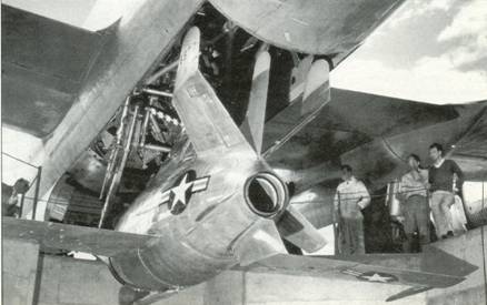 Надо сказать, что вопросы истребительного прикрытия бомбардировщиков В-36, контракт на проектирование которого был подписан ещё 11 апреля 1941 г., имели настолько важный приоритет, что в декабре 1942 г. была открыта специальная программа МХ-472, задачей которой было исследование путей повышения дальности истребителей сопровождения для прикрытия бомбардировщиков с межконтинентальной дальностью полёта. В то время необходимого решения так и не было найдено, и, поскольку полёт с дозаправкой всё ещё напоминал затянувшийся цирковой трюк, то единственно приемлемым решением было признано создание подвесного истребителя, пригодного для базирования на бомбардировщике.