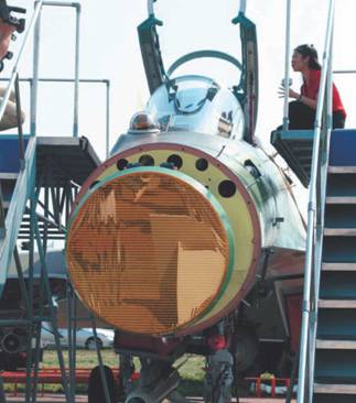 К МАКС-2007 на первом Су-35 был смонтирован опытный образец новейшей РЛСУ «Ирбис-Э» с пассивной ФАР разработки НИИП им. В.В. Тихомирова, и в течение некоторого времени самолет демонстрировался со снятым носовым конусом. Натурный образец этой ФАР и уменьшенный макет всей РЛСУ «Ирбис-Э» НИИП показывал также в павильонной экспозиции. Одной из отличительных характеристик РЛСУ «Ирбис-Э» является наличие электрогидравлического привода, позволяющего обеспечить поворот ФАР на углы ±60° по азимуту и ±120° по крену. Однако основным преимуществом РЛСУ самолета Су-35 является дальность обнаружения целей, которая достигает 350-400 км. В мировой практике до настоящего времени – как для серийных, так и для разрабатываемых перспективных бортовых РЛС истребителей (и с активными, и с пассивными ФАР) – такие цифры являются рекордными. В настоящее время РЛСУ «Ирбис-Э» находится в стадии летных испытаний на летающей лаборатории Су-30МК2 №503, и уже в первой серии полетов получены положительные результаты по основным заявленным характеристикам в режимах «воздух-воздух» и «воздух-поверхность».