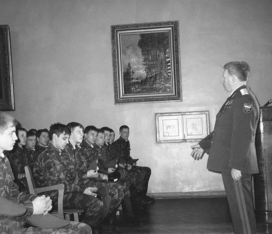 Будущие офицеры-артиллеристы внимательно слушают мой рассказ о героических днях обороны Ленинграда.