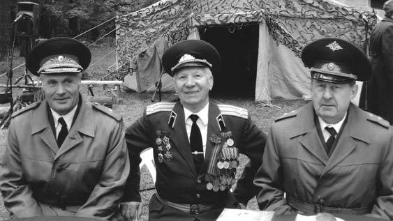 В родном Серпухове. На «фронтовой поляне» с председателем Совета ветеранов г. Серпухова полковником в отставке Железновым Анатолием Михайловичем и генерал-майором в отставке Макаровским Юрием Михайловичем.