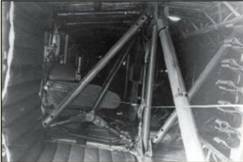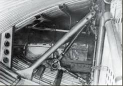 Артиллерист в крыле располагался сидя на матрасе, который виден слева. Справа — зажимы для снарядов