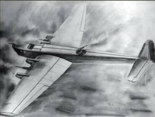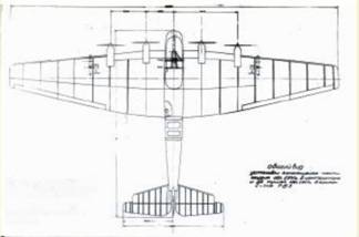 Рисунок перспективного варианта «воздушного линкора» с двумя неподвижными 76-мм зенитными пушками в крыле и двумя 45-мм пушками на турелях