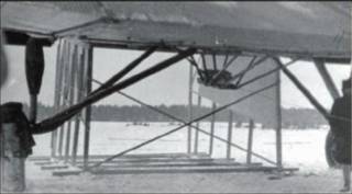 «Объект Г-52а» во время стрельб на полигоне. Видна веревка, за которую дергал артиллерист. Пушка сбоку закрыта листами фанеры для уменьшения воздействия пороховых газов на обшивку самолета и расчет