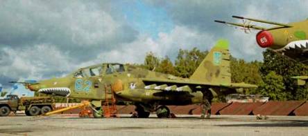 Из числившихся в списках 36 штурмовиков Су-25 боеспособны к началу 2014 г. были не более двух десятков, в числе которых было 10 самолетов, прошедших капремонт и модернизацию на АРЗ в Николаеве.