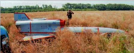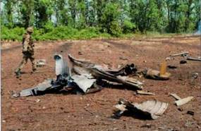 Подбитый ополченцами и упавший на их территории беспилотный разведчик Ту-143