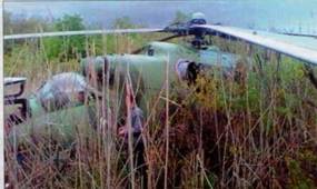 Поврежденный 5 мая огнем ПВО АНР и севший в заболоченной пойме реки в р-не Славянска украинский Ми-24.