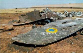 Горячее лето 2014 г. По характерной законцовке крыла можно однозначно сказать, что эти обломки принадлежат одному из сбитых штурмовиков Су-25.