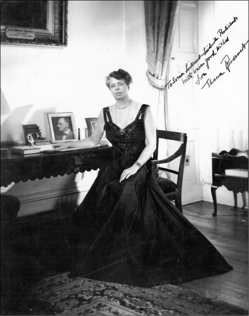 Фотография, подаренная Элеонорой Рузвельт Л.М. Павличенко. Подпись справа наверху: «Младшему лейтенанту Людмиле Павличенко с теплыми искренними пожеланиями от Элеоноры Рузвельт».