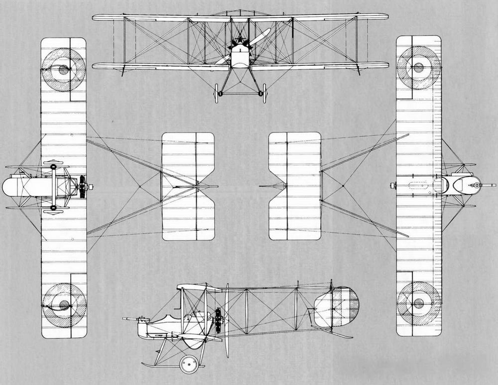 «Девятка»Попыткой радикально улучшить летные качества FB.5 с сохранением той же силовой установки стал самолет FB.9. Он отличался модифицированным крылом уменьшенного размаха с закругленными законцовками, усовершенствованным хвостовым оперением, шасси с V-образными стойками и без противокапотажных лыж, а также более компактной и обтекаемой гондолой. Снижению аэродинамического сопротивления способствовало также применение проволочных растяжек овального сечения - т.н. Rafwires[* Буквально - «проволока RAF», разработанная на предприятии Royal Aircraft Factory.]. В качестве силовой установки применялся все тот же «Моносупап». Прежним было и вооружение - один пулемет «Люис», но на усовершенствованной установке, обеспечивающей большие углы обстрела. Самолет удалось облегчить почти на центнер. За свой внешний вид FB.9 получил прозвище «Стримлайн Ган Бас» -т.е., «обтекаемый».