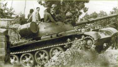 Сайгон, 30 апреля 1975 года. Танк Т-54А из состава 202-й танковой бригады ВНА въезжает в ворота президентского дворца.