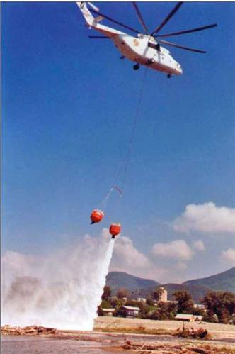 Пять лет назад в станице Динской Краснодарского края была испытана такая система с баком пенообразователя внутри фюзеляжа вертолета Ми-8. В 2005 году подобная система с баком пенообразователя, расположенным вне фюзеляжа, прошла успешные испытания на базе Северо-западного отделения охраны лесов. Эксплуатация показала, что удалось повысить огнетушащие свойства воды в 2–2,5 раза!