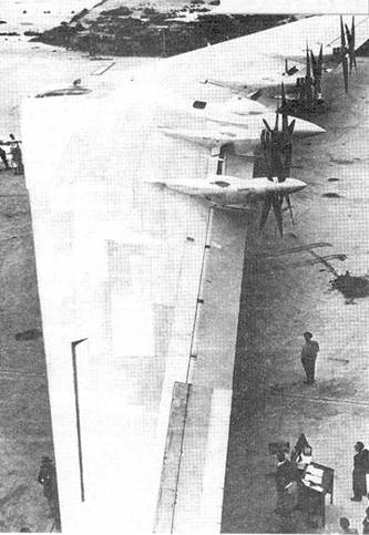 За спиной командира экипажа сидел стрелок – оператор крыльевых пулеметных барбетов. Его основным рабочим инструментом был прицельный перископ, чьи оптические головки выходили как на верхнюю, так и на нижнюю поверхности корпуса – крыла. В левой части кабины сзади располагался радист, в правой – бортинженер с большой панелью приборов контроля двигателей. Между рабочими местами радиста и инженера имелась дверь, ведущая в кабину заднего стрелка, в ведении которого находились верхняя, нижняя и задняя турели. В стенках коридора, ведущего в заднюю кабину, имелись проходы в двигательные отсеки для осмотра и ремонта двигателей в полете, снабженные воздушными шлюзами. В случае выполнения сверхдлительных полетов в центроплане оставалось достаточно места, чтобы разместить подвесные койки для сменного экипажа.