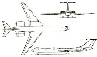 Дополнительные сведения. Ил-62- первый российский турбореактивный пассажирский самолет с межконтинентальной дальностью полета. Разработка самолета Ил-62 началась в 1960 г., опытный образец (с двигателями АЛ-7 конструкции А. М. Люльки) поднялся впервые в воздух 3 января 1963 г., регулярная эксплуатация Ил-62 на воздушных линиях началась в сентябре 1967 г. Вариант Ил-62М совершил первый полет в 1971 г. и поступил в эксплуатацию в январе 1974 г. Ил-62М используется для перевозок высокопоставленных лиц. Построено более 250 самолетов всех модификаций, включая около 75 на экспорт в девять стран (Куба, Чехословакия, ГДР, Польша, Венгрия, Мозамбик, Ангола, Китай, КНДР). Предполагалось построить дополнительное число Ил-62М на Казанском авиазаводе.