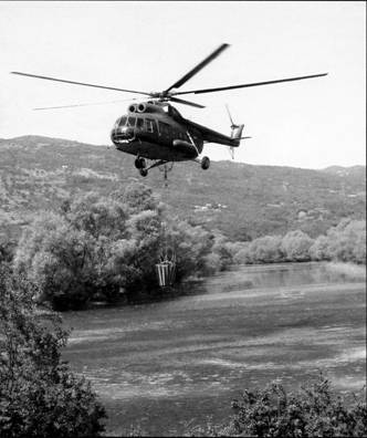 Ми-8Т вооруженных сил Югославии на тушении пожара в Черногории (фото Светозара Йокановича)