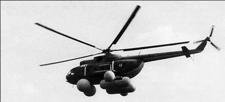 Ми-8Т на испытаниях баллонетов (архив ВВС Югославии)