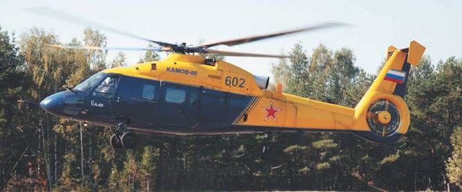 Как известно, Ка-60 создавался под двигатель РД-600В взлетной мощностью 1300 л.с. (на ЧР – 1550 л.с.) разработки Рыбинского КБ моторостроения (ныне – НПО «Сатурн»). 30 декабря 2003 г. двигатель получил сертификат типа Авиарегистра МАК, однако из-за отсутствия заказов и соответствующего финансирования в серийное производство не внедрялся. Аналогичная ситуация и с трансмиссией Ка-60: главный редуктор ВР-60А и хвостовой редуктор ХВР-600А разрабатывались ОКБ моторостроения (г. Воронеж), но из-за недостатка средств их доводка затянулась. Кстати, именно проблемы с редуктором ВР-60А считаются одной из причин задержек в испытаниях вертолета.