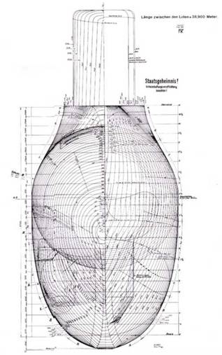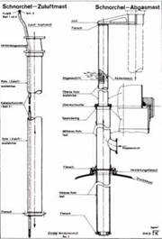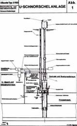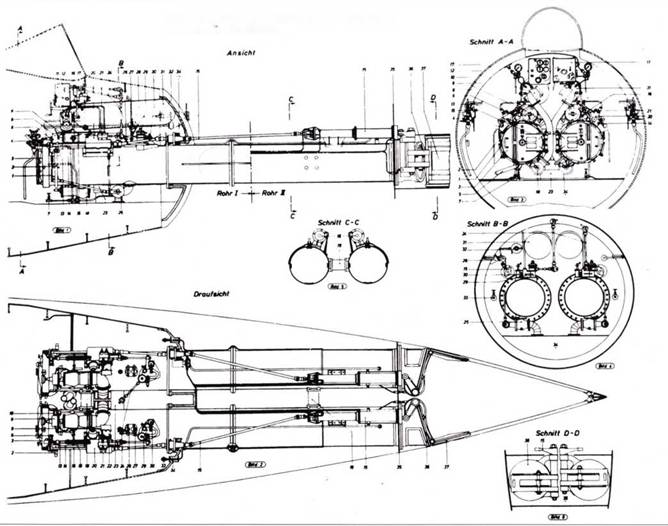 Продольный и поперечный разрез торпедного аппарата подлодок Wа 201 и WК 202.