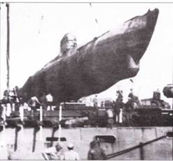 Погрузка U 1406 на борт американского транспортного корабля «Шомакер» 14 сентября 1945 г.