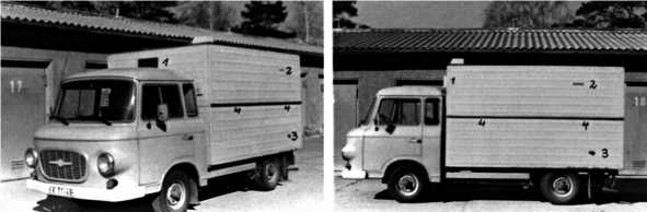 На фотоснимках цифры 1 и 2 — камуфляжи «вентиляционное отверстие рефрижератора» для специальной фото- и видеоаппаратуры скрытого наблюдения. Под цифрой 3 скрывается камуфляж «Дверная ручка» для второго комплекта фото- и видеотехники скрытого наблюдения. 4 — это отверстия для микрофонов, записывающих акустическую обстановку вокруг автобуса, например, во время уличных демонстраций, кто и какие лозунги выкрикивает или для фиксирования бесед объектов оперативной разработки, которые решили покурить и пошептаться, спрятавшись за «пустой» рефрижератор.