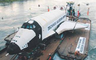 Наконец в субботу, 12 апреля – дату, отмечаемую во всем мире как Международный день авиации и космонавтики, понтон с БТС-002 прибыл в гавань, расположенную вблизи Шпейера. Оттуда с помощью наземного транспорта его позднее перевезли на территорию технического музея. Нынешней осенью «Буран» уже смогут увидеть посетители.