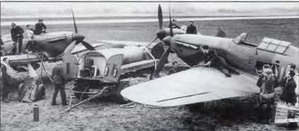 «Харрикейн» поврежденный во время налета самолетов люфтваффе