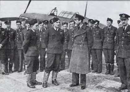 Принц Кентский во время посещения эскадрильи "Сити оф Лондон" разговаривает с двумя первыми австралийскими пилотами-добравольцами