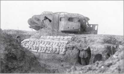 Танк Mk II или Mk III «самка», уничтоженный у самого германского окопа.