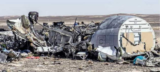 Утром 31 октября 2015 г. в небе над Синайским полуостровом (Арабская Республика Египет) через 22 минуты после вылета из аэропорта Шарм- эль-Шейх потерпел катастрофу самолет А321 (EI-ETJ) российской авиакомпании "Когалымавиа" (работает под брендом Metrojet), выполнявший чартерный рейс 7К-9268 в С.-Петербург. На борту самолета находилось 224 человека, в т.ч. 217 пассажиров и 7 членов экипажа. Все они погибли. Несмотря на то, что расследование катастрофы продолжается, уже установлено, что причиной ее стал террористический акт - подрыв на борту взрывного устройства, приведшего к разрушению конструкции самолета в воздухе на высоте 9400 м, падению его частей на землю и гибели всех находившихся на борту. Катастрофа в Египте стала крупнейшей по числу жертв в истории гражданской авиации современной России (и Советского Союза) и вторым после унесшего 90 жизней двойного теракта 24 августа 2004 г. с самолетами Ту-154Б-2 авиакомпании "Сибирь" и Ту-134А авиакомпании "Волга-Авиаэкспресс" случаем умышленного подрыва российского гражданского воздушного судна с пассажирами в новейшей истории нашей страны. Трагедия над Синаем вынудила российские власти принять беспрецедентные меры по обеспечению безопасности своих граждан, включая полную приостановку пассажирских авиаперевозок в Египет.