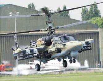 Серьезное внимание специалистов и потенциальных заказчиков в Ле-Бурже было приковано и к впервые демонстрировавшемуся здесь разведывательно-боевому вертолету Ка-52. Такие машины уже состоят на вооружении ВВС России, а, по словам зам. генерального директора «Рособоронэкспорта» Александра Михеева, активно ведутся переговоры с рядом заинтересованных зарубежных покупателей. Он заметил, что недавно подписан первый экспортный контракт по вертолету Ми-28НЭ, и Россия уже приступила к его выполнению. Кроме того, буквально накануне салона в Ле-Бурже между «Рособоронэкспортом» и Министерством обороны США был заключен новый контракт на поставку 30 многоцелевых вертолетов Ми-17В-5 для Афганистана. Все это говорит о том, что, несмотря на усиливающуюся конкуренцию, российские вертолеты продолжают пользоваться большим спросом на мировом рынке. А.Ф.