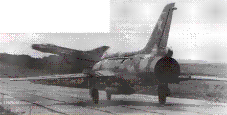 Су-17 из состава 43-го опиб в арочном укрытии на аэродроме Чойбопсан в Монголии. Хорошо заметно отличие носовой части после ремонта, вызванного столкновением с другим самолетом на стоянке