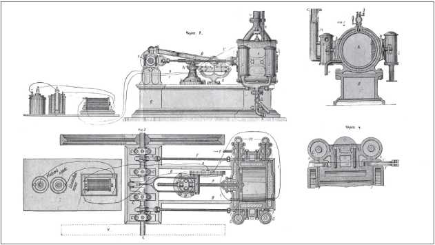 Создание теплового двигателя заняло немалое время. Можно опять же начать от древних изобретений — полулегендарной «паровой пушки» Архимеда, вращающегося шара Герона Александрийского — пройти через паровой цилиндр в рукописях Леонардо да Винчи. Но возьмем более ограниченный период. Паровой водоподъемный аппарат Соломона Де Ко (1615 г.), пороховые двигатели аббата Оттефеля (1678 г.) и Христиана Гюйгенса (1680 г.), паро-атмосферный двигатель Дени Папена (1690–1706 гг.) составили определенный этап исследований возможностей использования теплоты для совершения механической работы, но остались на уровне опытов. Паровые машины Томаса Севери (1698 и 1715 гг.) и Томаса Ньюкомена (1711–1712 гг.) нашли практическое применение для откачки воды, но — как и упомянутые опыты — не были еще машинами непрерывного действия. Хотя именно попытки усовершенствования паро-атмосферной машины Ньюкомена привели к появлению универсальных паровых двигателей. «Огнедействующая машина», созданная в России И.И. Ползуновым в 1765 г. объединением двух цилиндров ньюкоменовского типа, осталась без развития. Куда большая удача выпала Джеймсу Уатту, взявшему в 1769 г. в Англии патент на одноцилиндровую «машину простого действия» с конденсатором, отделенным от рабочего цилиндра, а в 1784 г. — на «машину двойного действия», которая и положила начало универсальным тепловым двигателям и «эпохе пара» в промышленности и на транспорте.