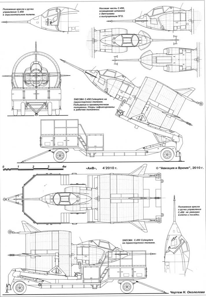 Постройка «Колеоптера» завершилась в апреле 1958 г., и его доставили на площадку SNECMA в испытательном центре ВВС в Милан-Виллярош (Melun-Villaroche) для наземных испытаний. С.450 привезли на специально разработанной транспортировочной тележке, выполненной в виде автомобильного прицепа. Это универсальное транспортное средство имело мощный подъемник для установки самолета в вертикальное положение и все необходимое оборудование для его подготовки к полету. Предполагалось, что на приблизительно таких же прицепах можно транспортировать и боевые СВВП, обеспечивая их скрытное рассредоточение.