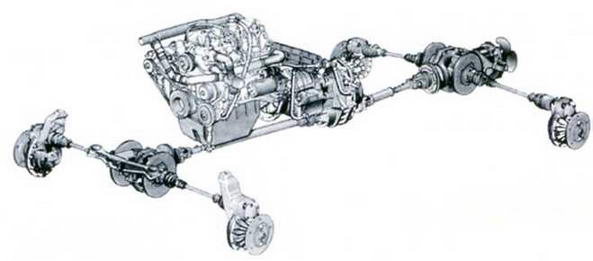 В передней части корпуса установлен четырехцилиндровый четырехтактный рядный дизельный двигатель "Пежо" XD3T объемом 2,5 л, с турбонаддувом. При частоте вращения коленчатого вала 4150 об./мин двигатель развивает мощность 95-105 л .с. Перед двигателем установлен радиатор; воздухозаборник с фильтром смонтирован в верхнем лобовом листе МТО. Выхлопная труба с глушителем выведена с правого борта под порожком правой двери. Емкость топливного бака - 82 л, еще 20 л возится в канистрах в кормовой части обитаемого отделения. Двигатель и агрегаты трансмиссии аналогичны использовавшимся в гражданских автомобилях "Пежо" 505, 604 и в армейском джипе "Пежо" Р4. Автоматическая трансмиссия изготовлена по западногерманской лицензии. Она включает коробку передач ZF ЗНР 22 с гидротрансформатором, двухступенчатую раздаточную коробку и обеспечивает три скорости переднего и одну заднего хода.