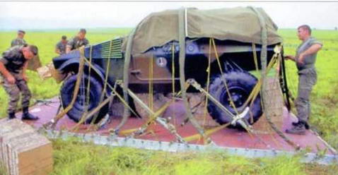 VBL может перебрасываться вертолетами AS332 "Супер Пума" или СН-53, а также военно-транспортными самолетами С-130 "Геркулес", С-160 "Трансал" и А400М. Парашютное десантирование из самолета типа С-130 возможно со средних высот при использовании парашютной платформы PL-11 или PL-12 с бумажно-сотовой амортизацией и многокупольной парашютной системой (три или четыре купола), а с предельно малых высот - маловысотной системы LAPES (Low Altitude Parachute Extraction System) с одним вытяжным парашютом.
