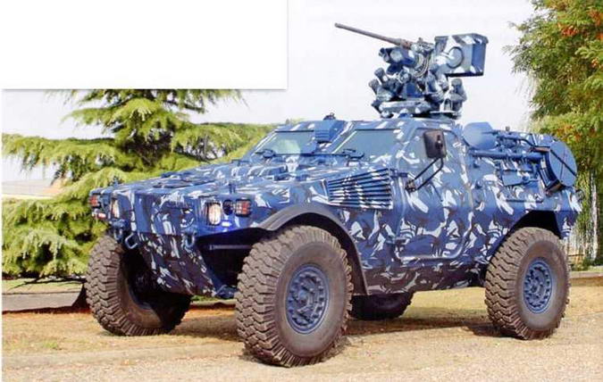 Бронеавтомобиль VBL с дистанционно-управляемой установкой WASP и усиленными бортовыми бронедверями. Обратите внимание также на отнесенную назад антенну.