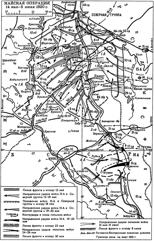 План майской операции состоял в том, чтобы разгромить противника в Белоруссии и открыть себе путь на Варшаву, а уцелевшие польские войска оттеснить на юг, к полесским болотам, и там полностью уничтожить.