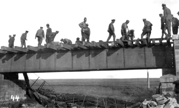 Чешские легионеры ремонтируют ж.д. мост на ст. Кинель, июнь 1918 г.