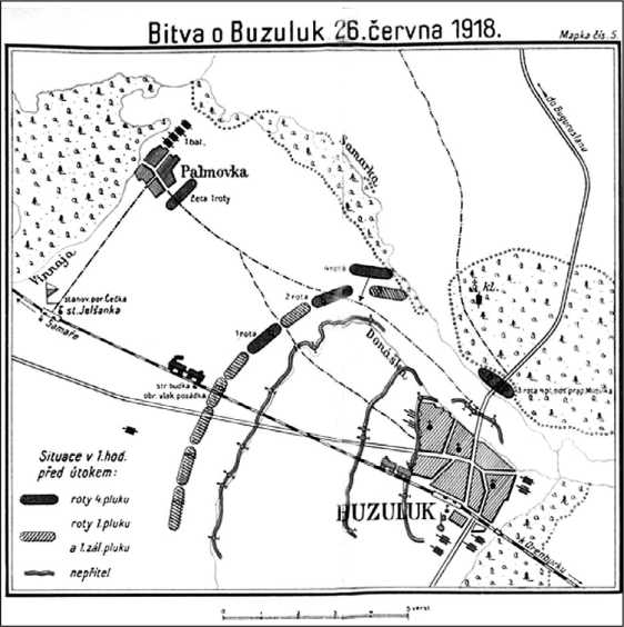 Схема сражения за Бузулук 24–26 июня 1918 г. из чешского военного архива.
