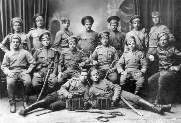Группа оренбургских казаков вместе с чешскими легионерами. Оренбургский фронт, 1918 г.