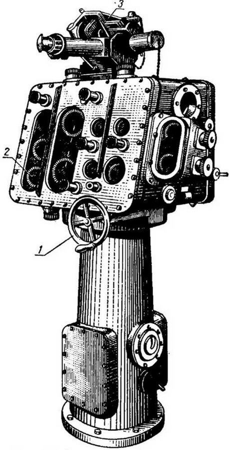 1 — маховик горизонтального наведения; 2 — шкала; 3 — визир