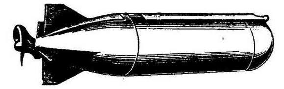 В хвостовой части торпеды расположены гребные винты, насаженные на валы, соединенные с главной машиной. Имеются здесь и четыре пера, на которых закреплены вертикальные и горизонтальные рули для управления ходом торпеды по направлению и глубине.