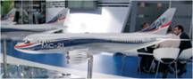 Перспективный ближне-среднемагистральный пассажирский самолет с двумя двухконтурными турбореактивными двигателями для перевозки 150–210 человек (в зависимости от модификации) на расстояние до 4500–5500 км со средней скоростью 850 км/ч. МС-21 должен стать основной гражданской самолетостроительной программой ОАК в данном классе летательных аппаратов и с середины следующего десятилетия прийти на смену в российских авиакомпаниях нынешним самолетам Ту-154М, составив достойную конкуренцию самолетам иностранного производства типа А320 и B737. В 2009 г. программа находилась на этапе эскизного проекта, объявлены тендеры на разработку и поставку основных систем и комплектующих, в которых участвуют ведущие российские и зарубежные компании.