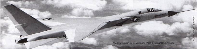Первый прототип «Виджилента» YA3J-1 (завод. № 145157) выкатили из сборочного цеха 16 мая 1958 г. Три месяца заняли наземные проверки, газовки и рулежки. И вот 31 августа шеф-пилот компании Ричард «Дик» Вензель (Richard «Dick» Wenzel) оторвал самолет от заводской ВПП.