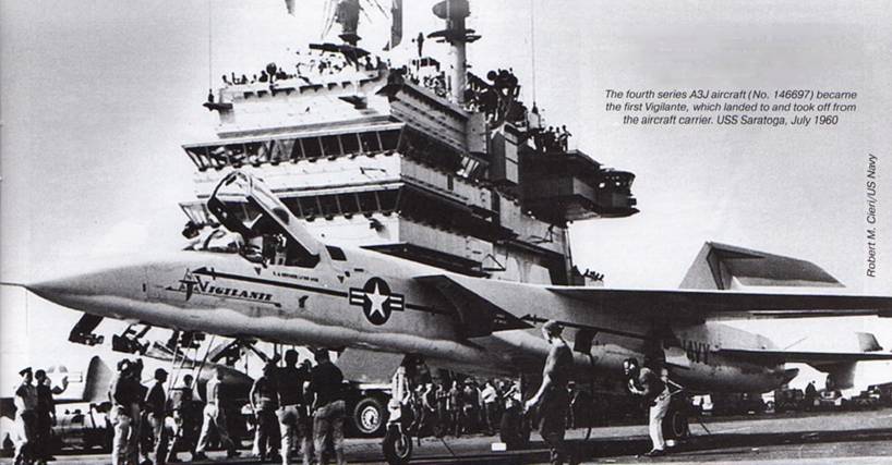 Четвертый серийный самолет A3J (№ 146697) стал первым из «Виджилентов», совершившим посадку и взлет с палубы. Авианосец «Саратога», июль 1960 г.