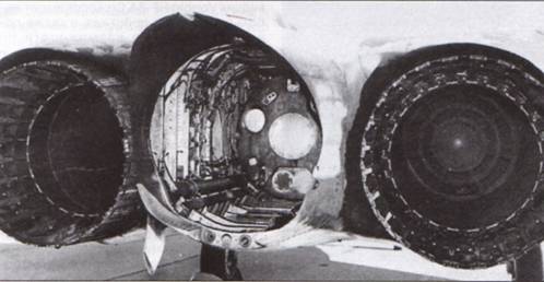 Сопла двигателей J79-GE-8 и «ядерный туннель», в котором виден дополнительный топливный бак